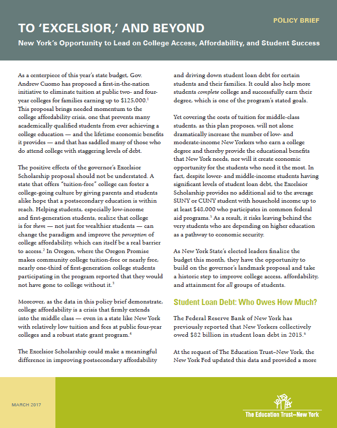 “Access to financial aid is a key factor in whether low-income students have the opportunity to attend college,” said Ian Rosenblum, Executive Director of The Education Trust–New York. “We hope this project spotlights the hard work that many schools are already doing to support their students in completing the FAFSA and inspires even more schools to take steps that research shows will help students realize the dream of a higher education.”
